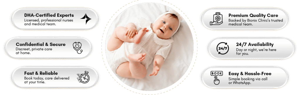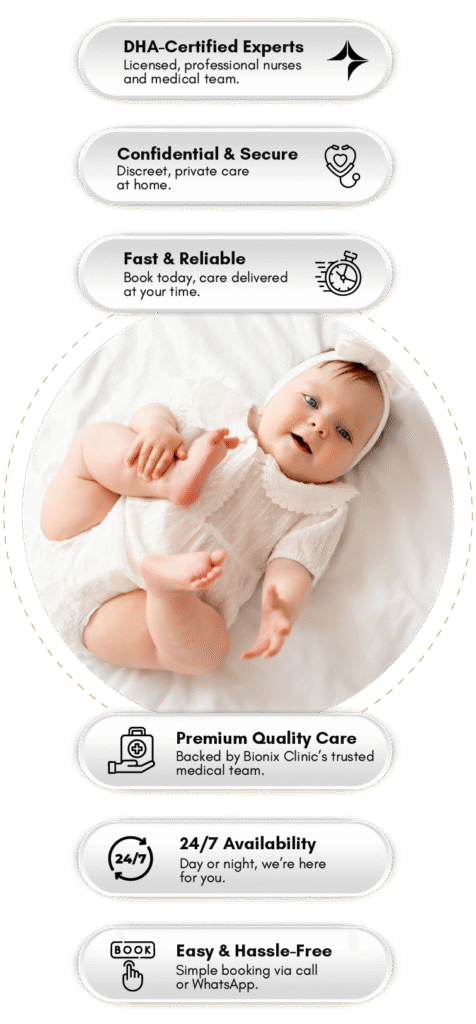 Bionix On Call provides expert mother and baby care services across Dubai, offering safe postnatal recovery and newborn support at home. Our DHA-licensed nurses and medical experts ensure the health, comfort, and confidence of both mother and baby.